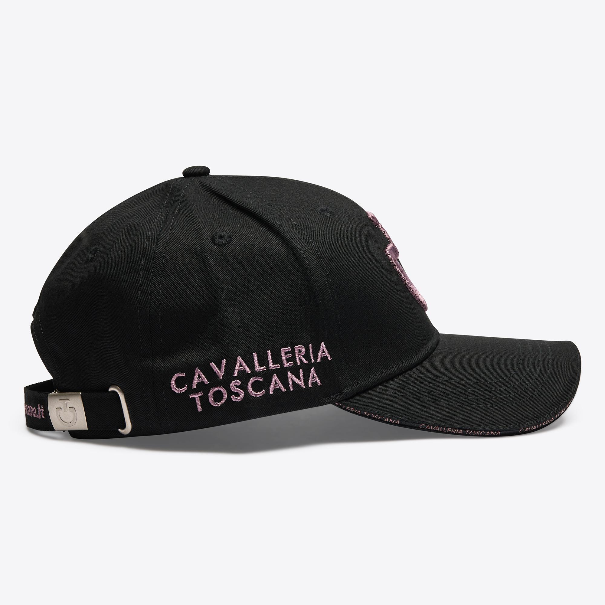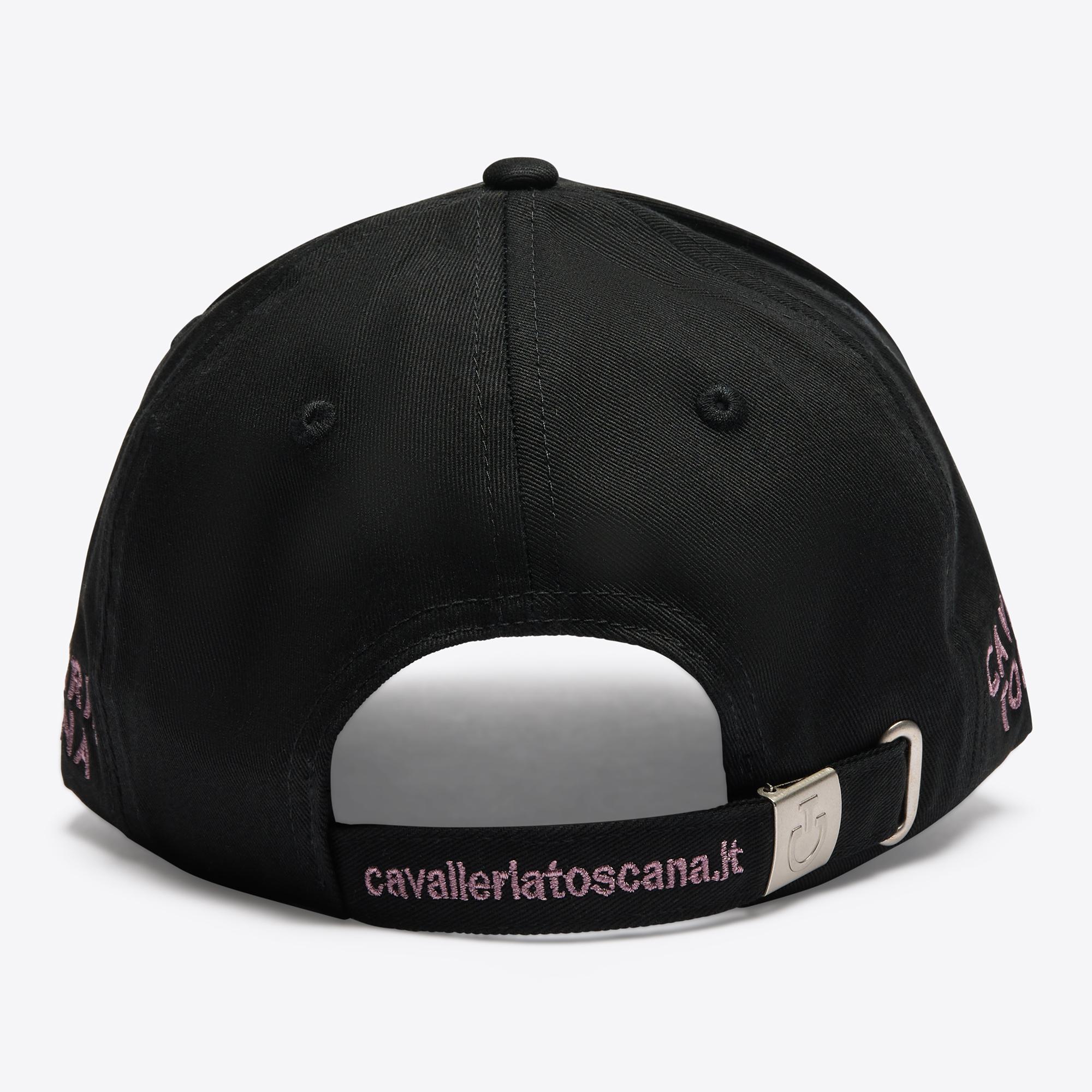 This cap is made from 100% breathable cotton, it features a curved brim that protects you from sunlight and is refined by an embroidered logo on the front. The hat has an adjustable fastening with strap.
