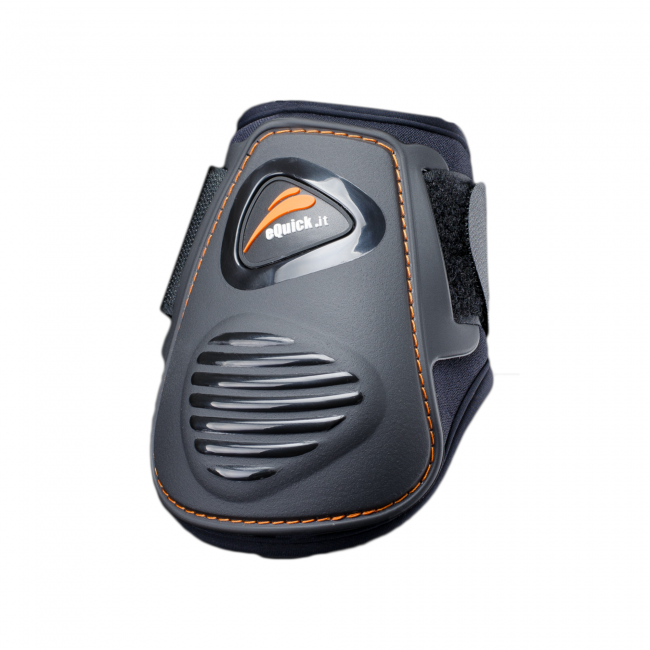Fetlock boots in neoprene coupled with Lycra, reinforced TPU shell with exclusive treatment that makes them looks like leather, equipped with double velcro.